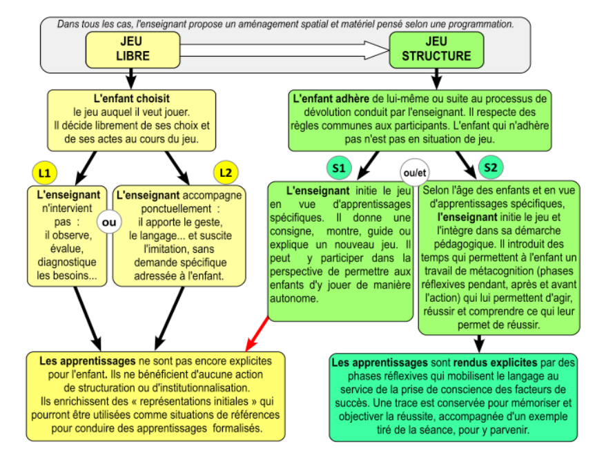Le schéma ci-dessous récapitule nos propos sur le jeu libre et le jeu structuré.